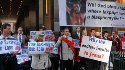 Members of the American TFP and America Needs Fatima prayed the Rosary and offered public reparation and protest against the “P*** Christ” blasphemy by Andres Serrano in front of the Edward Tyler Nahem Art Gallery on 57th Street in New York City on September 27.