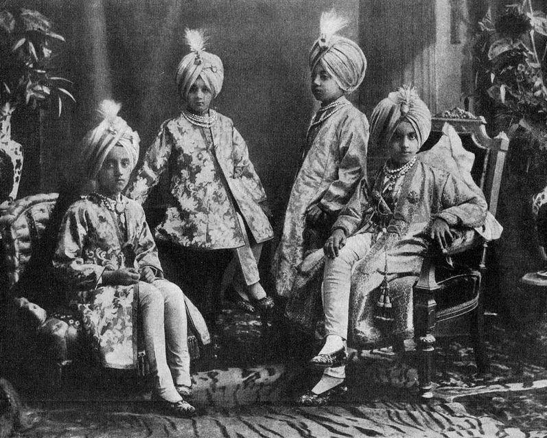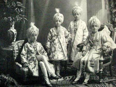 Our picture shows the four sons of the Maharaja of Kaourthala at the beginning of the century. The group makes an agreeable impression as there is something quintessentially noble, gracious and refined in the bearing, countenances and attire of these small princes.