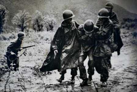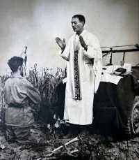 In June 1950, a North Korean army crossed the 38th parallel, and advanced quickly toward Seoul, South Korea. The U.S. intervened militarily, with the 1st Cavalry Division executing an amphibious landing to block the advancing army. The enemy onslaught was severe and the U.S. units soon were in retreat. Fighting was intense. Fr. Kapaun, with his soldier-parishioners in danger, was tireless. He moved among the GIs, ignoring enemy fire, comforting the wounded, administering the last rites, burying the dead, and offering Mass whenever and wherever he could. On one occasion, he went in front of the U.S. lines, in spite of intense fire, to rescue a wounded soldier.
