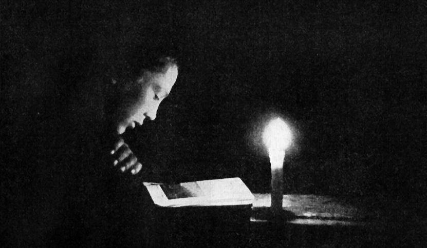 This happiness is vividly apparent in this picture. Three lights glow in the picture. The least important of them is the one that properly merits the name “light,” the candlelight. Its reflection on the book is the picture’s second glowing light, creating the impression that the thoughts in the text have become luminous.