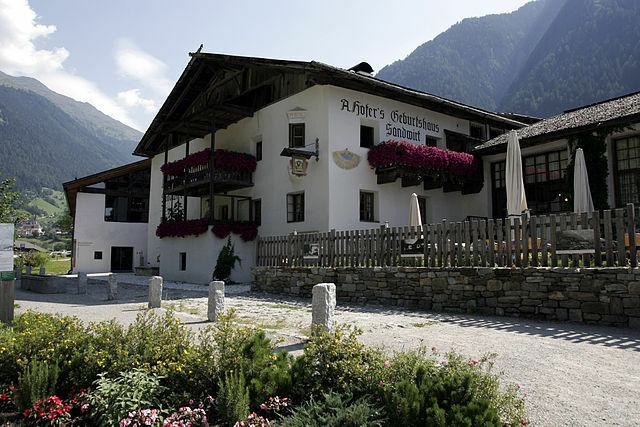 Judging by its design and decoration, the Sandhof truly reflects the alpine personality of the Austrian people and of the Hofer family from which it draws its fame. Everything about it, from the window flowers and garden to the wooden roof to the portrait of Andreas Hofer himself hanging from the outside wall suggests an unpretentious human touch that is so appealing to many modern travelers. It is a glimpse into a time when staying at an inn was not, as it is today, a mere business transaction between a “consumer” and some impersonal, multi-national hotel conglomerate. Rather, it was an opportunity to participate in a human-to-human interaction, for a family to serve a weary traveler regional treats like local cheese, the family’s traditional ham or sausage, or their wine – all not found anywhere else – or even an occasion to make a new friend along the way.