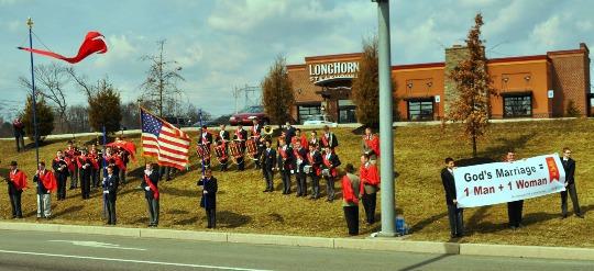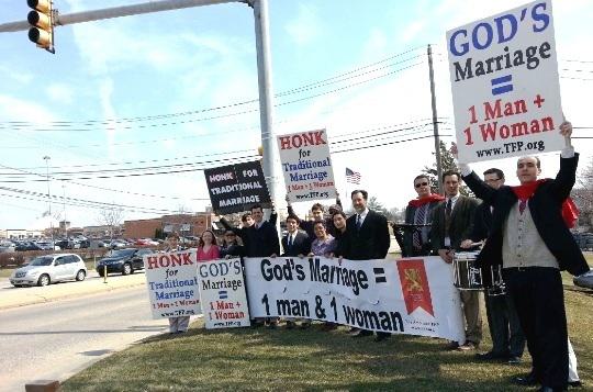 God bless them. Each rally captain gathered family and friends and assembled at busy thoroughfares to pray for the future of the family in America. The large banners they displayed said it all: "God's marriage = 1 man + 1 woman." From every corner, rally leaders confirmed what the mass media would rather not talk about. That is, Americans do not want same-sex "marriage." The loud honking for marriage, the thumbs up, the applause and widespread enthusiasm of the public was clear, unambiguous proof.