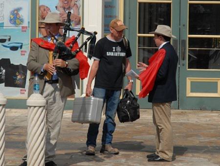 "What you're doing is very important. Good luck with your crusade, fellows," said a reenactor at the Alamo manning a display of period muskets, swords and Bowie knifes.