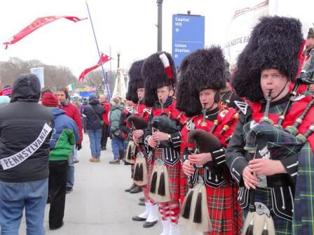 As the massive sea of humanity made its way up Capitol Hill to the steps of the Supreme Court, members of the American Society for the Defense of Tradition, Family, and Property (TFP) marched with red standards flying, and the ever-popular marching band, complete with brass, bagpipes and drums to encourage the crowd. International delegations of sister TFPs from Belgium, Germany and Italy joined the march.