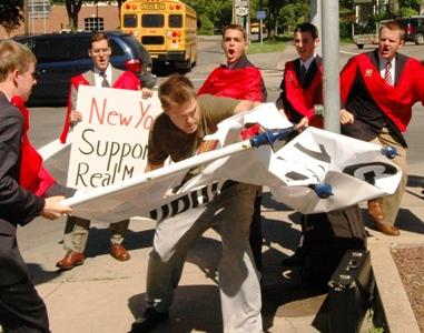 TFP Student Action members were assaulted while peacefully demonstrating for traditional marriage in Fairport, New York, on June 2.