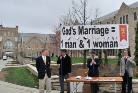 For a more detailed report, see: Promotion of God's Marriage Gets Cheers and Jeers at Notre Dame