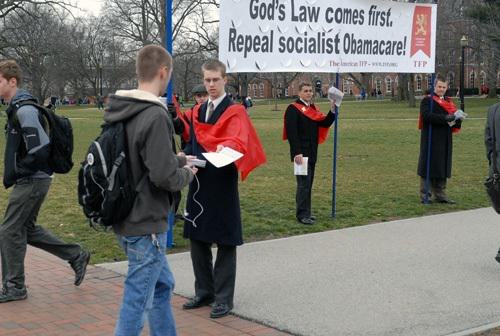 One passing man decried our rejection of socialist healthcare, claiming that the socialist system in Ireland is an exemplary model of what American healthcare should be. A brief discussion with TFP volunteer Damien Murphy, himself from Ireland, exposed the man's argument for the falsehood it was.