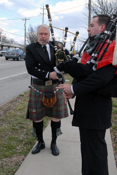 The support did not stop with the honks, however. Several people parked their cars and came to talk to us, and join the campaign for a time. At one point, a bagpiper, in full array, stopped and played for the campaign. "We saw you earlier and I told my wife that we would stop if you were still here on our way back. I'm honored to play with you."