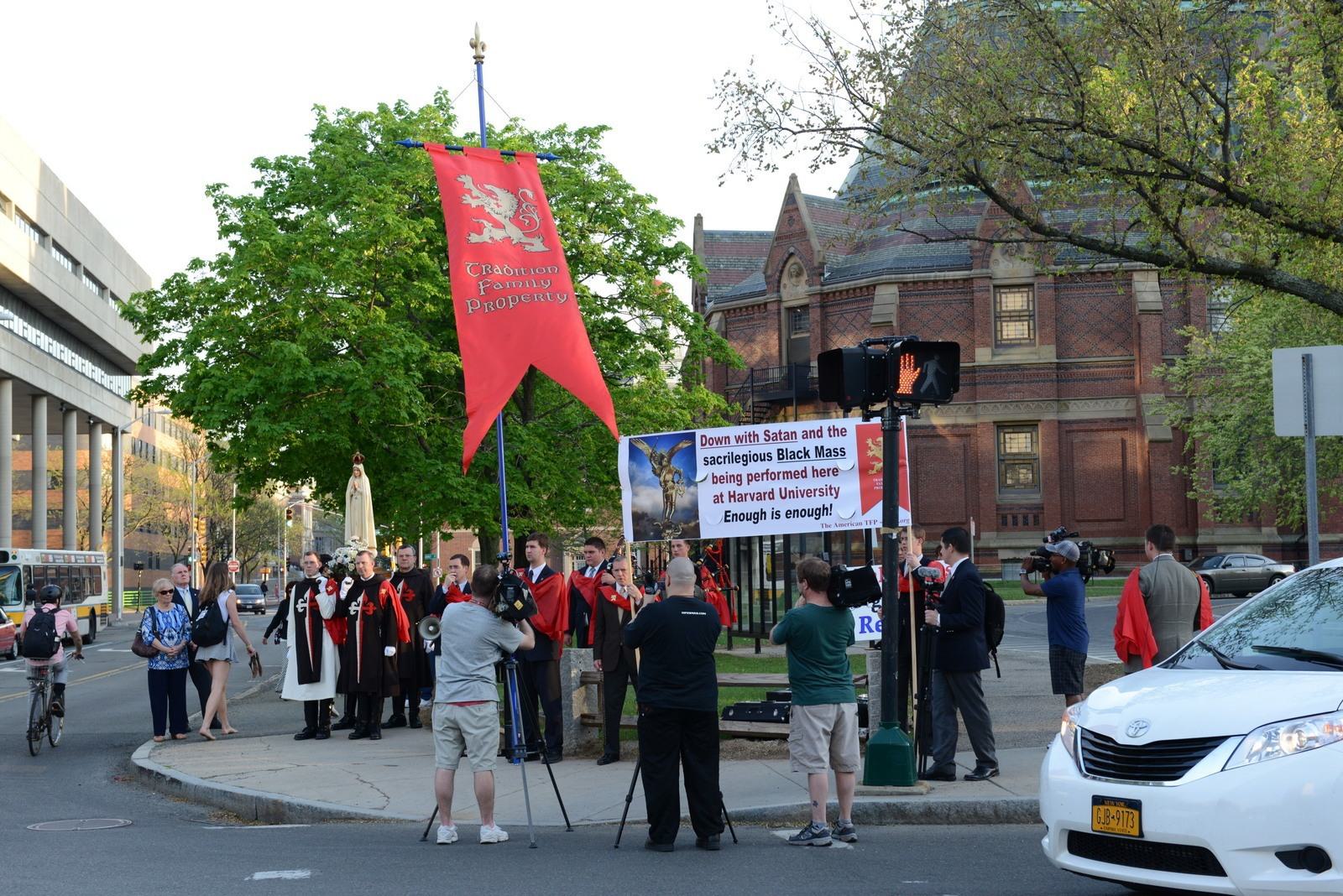 "Shame on Harvard!" followed by "Down with sacrilege!" and "Reparation, reparation, reparation!" echoed across campus as faithful Catholics gathered outside Harvard University's Memorial Hall on Monday to protest against the Satanic Black Mass scheduled to be held there. Thank God, the sacrilege did not happen due to a storm of peaceful yet robust protest that broke out over Harvard.