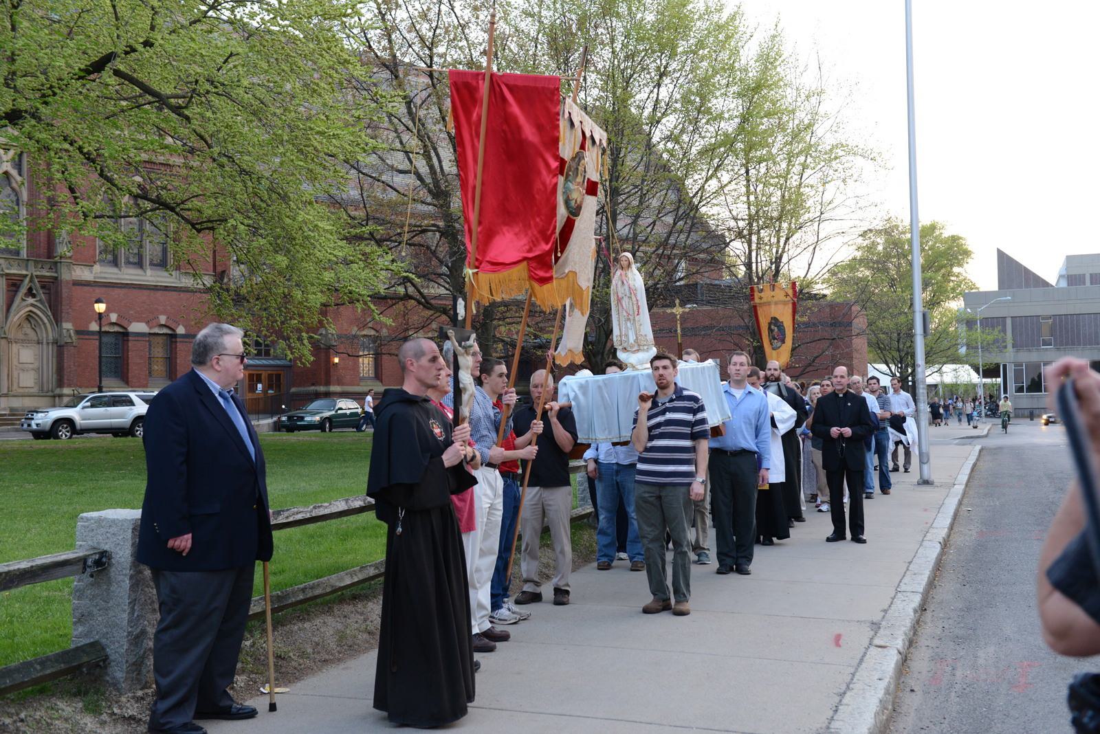 Around 8:00 PM we heard the news that some 30 minutes earlier the Harvard Extension Cultural Studies Club--having been encouraged by the Dean of Students and Alumni Affairs to move the sacrilegious event off campus, and having failed to find a new venue--announced that the black mass was canceled. When I gave the news to Our Lady's brave defenders, they cheered and applauded. We had come, we had seen, and Our Lady won.