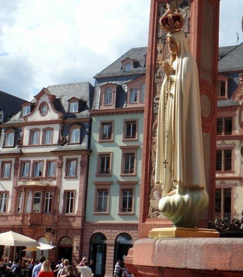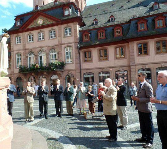 Recently, a group of TFP Student Action volunteers travelling across Europe for the annual student conference hosted by the Polish TFP (known also as the Father Peter Skarga institute) participated in a public square rosary rally in the center of Mainz, Germany – a regional capital and the home of the first public square rosary rally.