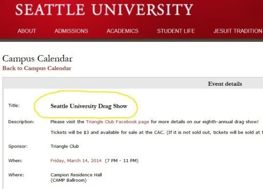 Preparations for the "Seattle University Drag Show" are underway, according to the Catholic institution's web site. The March 14 event will be the 8th "drag show" on this campus which has thus distanced itself from the ideals of St. Ignatius of Loyola yet still considers itself a Catholic university.
